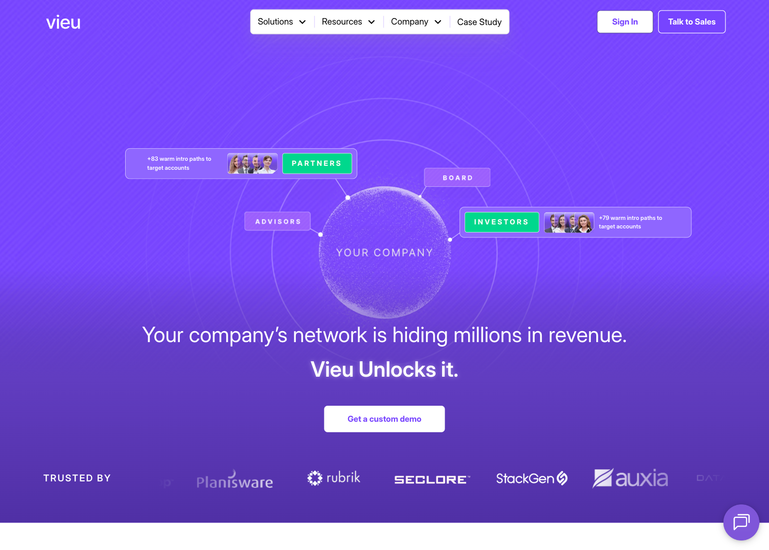 Vieu identifies hidden relationships across your company’s network, which you can leverage for warm intros to your decision-makers.